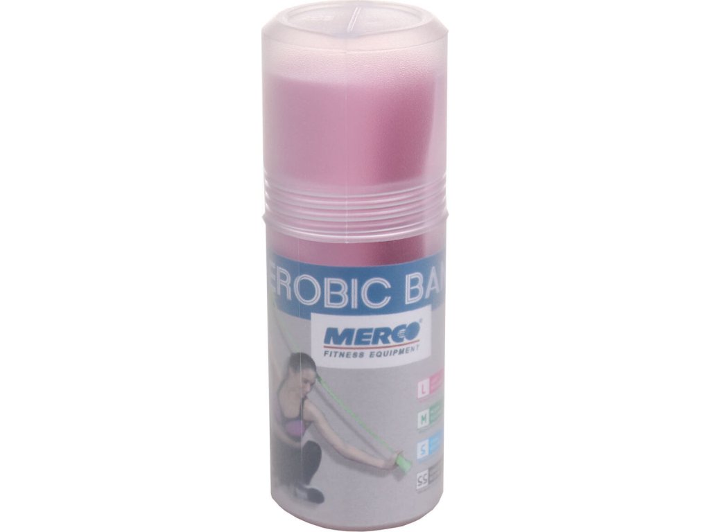 Merco Aerobic Band je 120 cm dlouhý a 15 cm široký pružný pás, jehož využívání při cvičení zlepšuje pozitivní i negativní sílu zejména hýžďových, zádových a břišních svalů, jejich výkonnost, mohutnost, pevnost, rozsah pohybu a celkovou svalovou koordinaci. To vše plynule, rovnoměrně a bez nežádoucích vedlejších dopadů. Posilovací guma Merco Aerobic Band je vyrobená z velice pružného a na omak příjemného termoplastického elastomeru (TPE), jenž si i při dlouhodobém používání a vysoké zátěži zachovává stoprocentní vlastnosti. Aerobní gumu Merco Aerobic Band nabízíme ve čtyřech různých tuhostech, aby odpovídaly individuálním požadavkům každého uživatele. Odpor gumy můžete samozřejmě ovlivnit i užším či širším držením, či kombinací jednotlivých tuhostí. Správná tuhost je taková, když po 10 opakováních jednoho cviku ucítíte svalovou námahu. Pro snažší identifikaci jsou odporové gumy Merco Aerobic Band barevně rozlišené (růžová / light, zelená / medium, modrá / strong, šedá / super strong).
