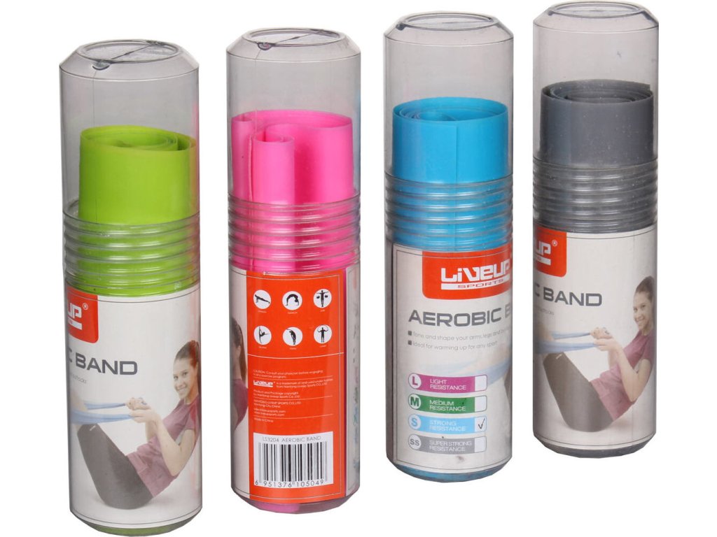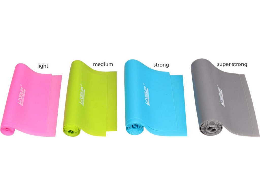 Posilovací gumy LiveUp 120 x 15 cm jsou výborný doplněk k protahování celého těla a posilovacích cvičení. Mezi které můžeme řadit například: aerobic, jógu, pilates nebo fitness cvičení. K dostání jsou v různých barvách, které udávají tuhost posilovací gumy. Rozměry 120 x 15 zaručují dostatečnou délku a šířku pro různé druhy cvičení, v sedě, ve stoje, na zemi. Při cvičení na zemi se doporučuje používat cvičební podložku. Na výběr máte ze 4 barevných provedení: růžová - lehká zelená - střední modrá - silná šedá - super silnáDoplňkové parametry