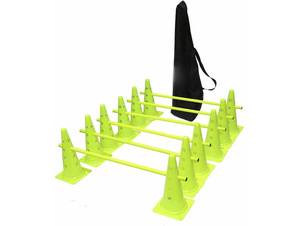 Sada obsahuje 12 multifunkčních kuželů s otvory (38 cm) a 6 tréninkových tyčí o délce 1 m, ze kterých lze vytvářet různé typy agility překážek. Díky variabilní konstrukci lze překážky snadno kombinovat a rozšiřovat o další agility pomůcky, čímž vznikne náročnější a pestřejší tréninková dráha.