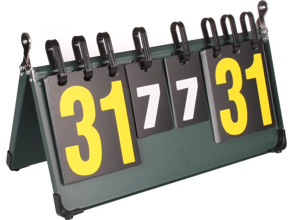 Chcete dodat nový rozměr Vašim zápasům? Nebo se jen konečně nehádat, jaké je právě skóre? Všem, pro které je dostačující rozpětí bodů od 0 do 30 a rozpětí setů od 0 do 7 doporučujeme lehký, snadno přenosný a cenově dostupný oboustranný ukazatel skóre Merco Allscore II. Rozkládací / skládací ukazatel skóre Merco Allscore II tvoří samonosná kovová konstrukce, očka z trvanlivého plastu a odolné plastové listy s číslicemi. Bílé číslice na kontrastním zeleném podkladu mají dostatečnou velikost (6,5 cm a 10,5 cm), aby byla dobře viditelná i na větší vzdálenost. Manuální ukazatel skóre Merco Allscore II má hmotnost 1,25 kg, rozložený má rozměr (Š x V x H) 45,5 x 21 x 18 cm a ve složeném stavu má rozměr (Š x V x H) 45,5 x 23 x 2,5 cm. Ukazatel skóre Merco Allscore II Vám zaručeně a s přehledem pomůže uhlídat průběh i konečný stav zápasu.Doplňkové parametry