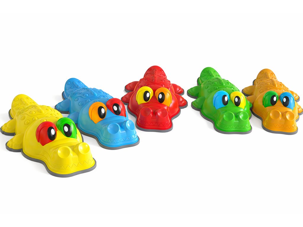 Sada balančních kamenů Krokodýli přináší dětem zábavný a originální způsob, jak rozvíjet motoriku, rovnováhu a koordinaci pohybů. Barevní krokodýli mají protiskluzný povrch, stabilní tvar a díky své délce poskytují dětem více prostoru pro našlapování i balanční hry.