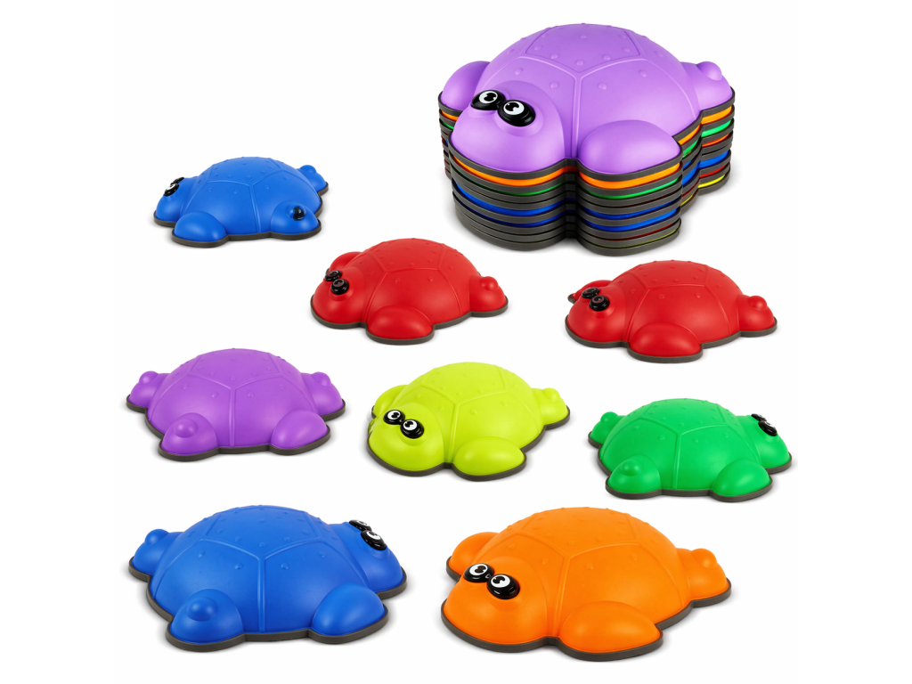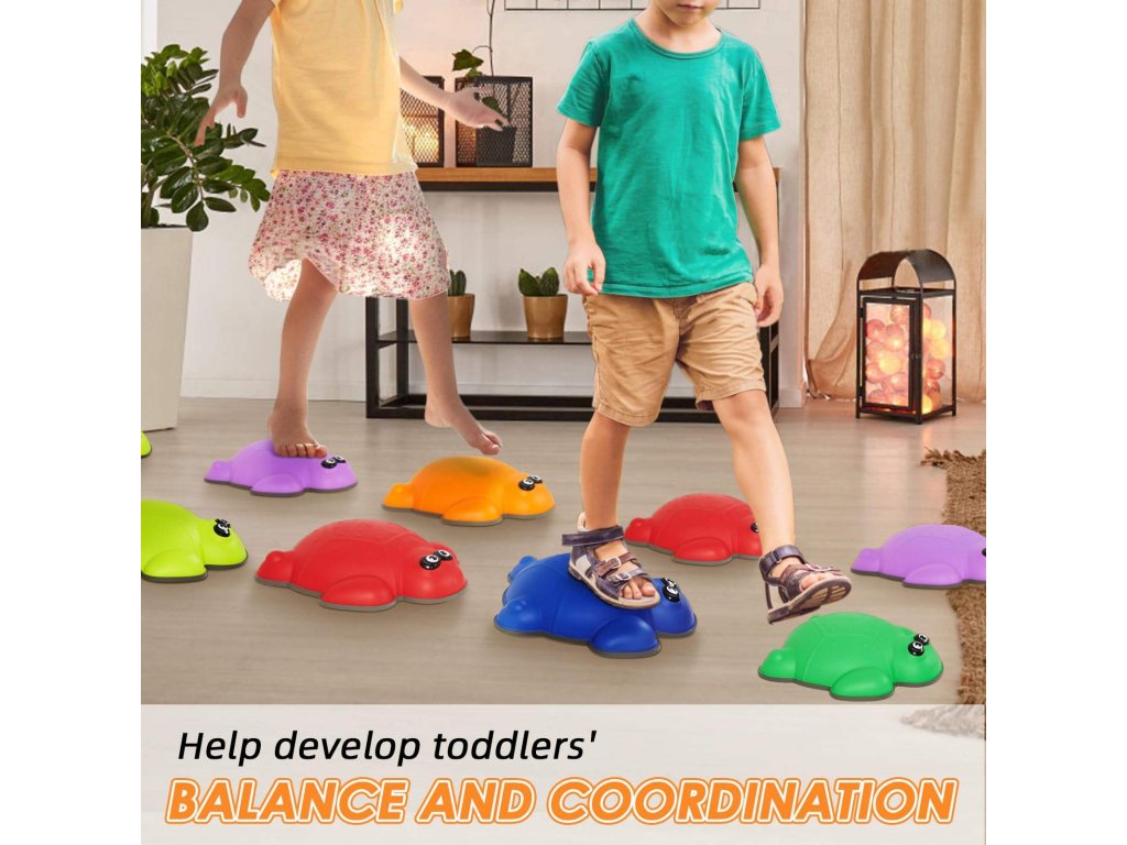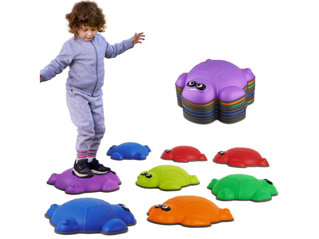 Sada balančních kamenů Želvy nabízí dětem zábavný a bezpečný způsob, jak rozvíjet motoriku, rovnováhu, koordinaci pohybů a jistotu při chůzi. Barevné želvy mají protiskluzný povrch, díky kterému děti mohou bezpečně přeskakovat, našlapovat a tvořit si vlastní balanční dráhy.