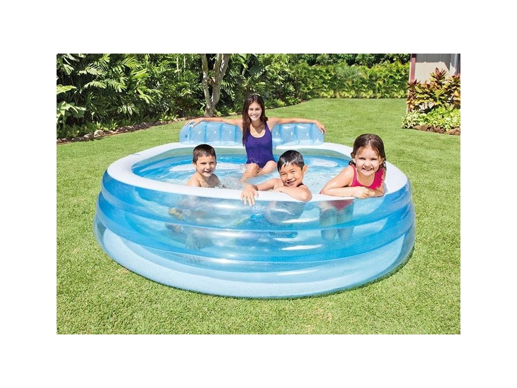 Je velký nafukovací bazén s průhledy na všech stěnách. Pohodlnost a stabilitu lze zajistit postavením bazénu na rovný povrch. Bazén má komfortní měké dno pro větší pohodlí. Snadně se vypouští vypouštěcím ventilem, který je součástí balení včetně sady pro menší opravy.