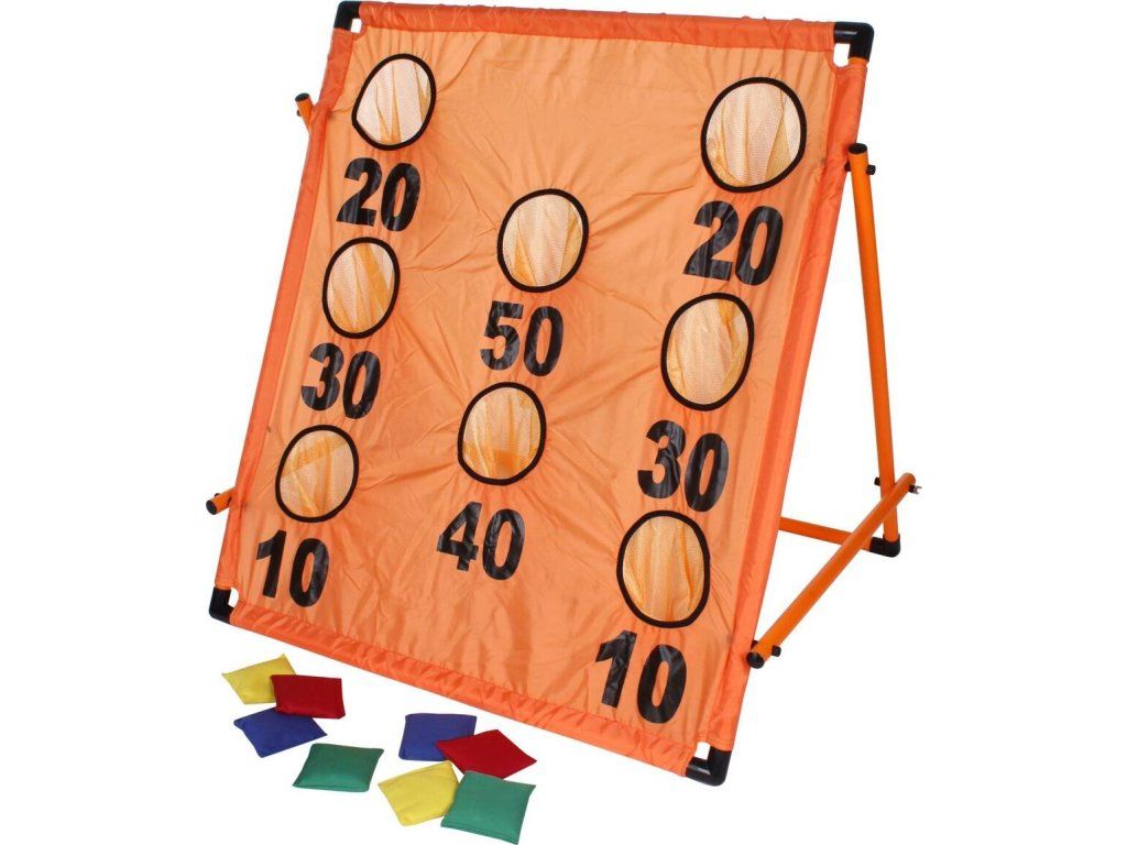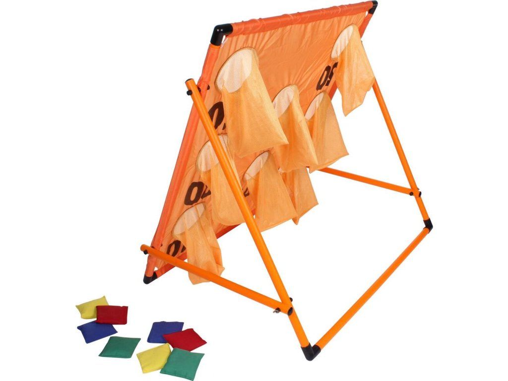 Merco Bean Target je zábavná hra pro celou rodinu, která je založená na podobném principu jako je populární americký Cornhole. Celá sada obsahuje skládací terč vyrobený z polyesteru a lehké PVC konstrukce a barevnými sáčky, které jsou naplněné fazolkami či kuličkami. Hru můžete hrát sami a trénovat tak svou přesnost spodního hodu, nebo hrajte s přáteli a vytvořte si svou soutěž o to, kdo získá nejvíc bodů. Terč má po jednoduchém složení rozměry přibližně 90 x 93 x 72 cm a hmotnost necelých 1,5 kg. Díky tomu jej jednoduše kamkoliv přenesete. Pokud hledáte novou hru do školy, pro dětské kroužky nebo pro svou rodinu, Bean Target je to pravé! Upozornění: Není vhodné pro děti mladší 3 let. Vždy házejte bean bag spodem na terč a ne plnou silou horním švihem, jinak časem hrozí poškození terče. - sada: 1x terč + 4 páry bean bag sáčků - materiál: polyester, PVC, bavlna - terč: 90 x 93 x 72 cm (výška x šířka x hloubka) - průměr otvoru: 13 cm - bean bag: 9,5 x 9,5 cm, 80 g - rozměry balení: 113 x 13 x 12 cm - hmotnost sady: cca 2,3 kgDoplňkové parametry