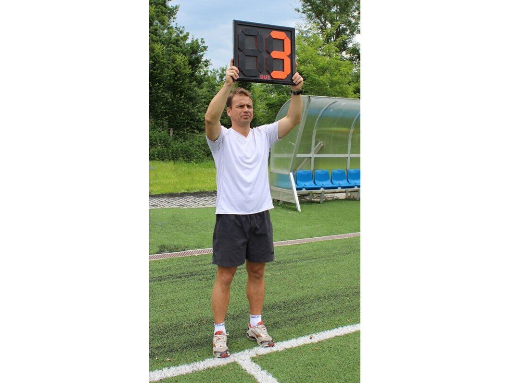 Mechanická tabule pro střídání Merco Board je velmi oblíbená mezi trenéry. Číslice jsou natřeny reflexními barvami. Z jedné strany jsou natřeny na žluto, druhá strana na oranžovo, takže jsou skvěle vidět i z velké dálky. Díky novému rotačnímu systému, který si značka Merco nechala patentovat, nastavíte mechanicky číslice za velmi krátkou dobu.