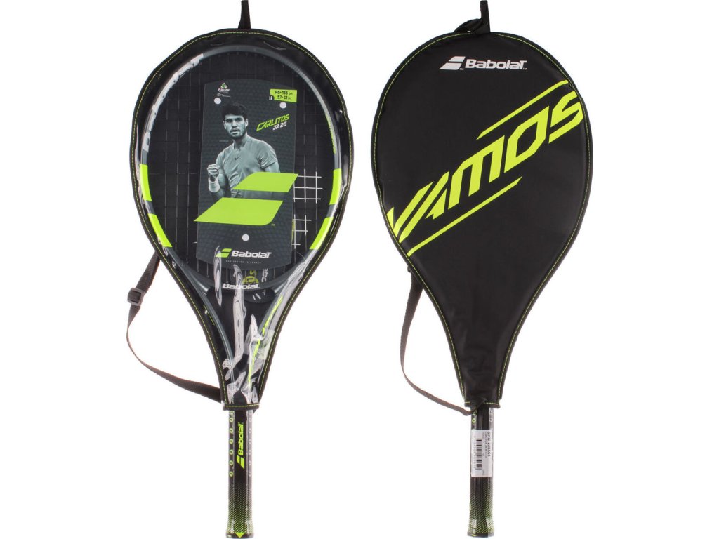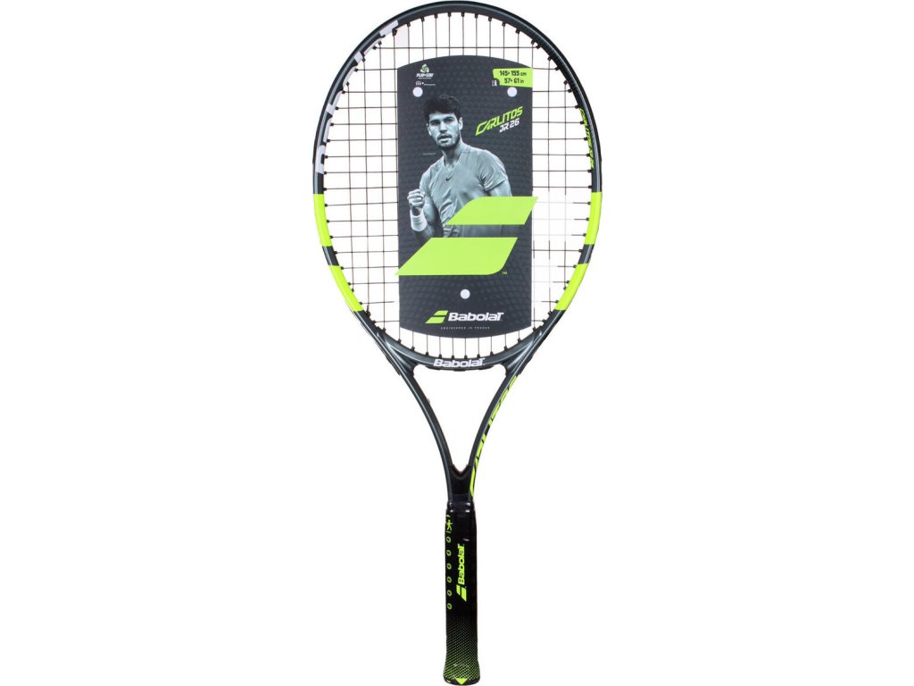 Dětská raketa Babolat Carlitos JR 26 inspirována šampiónem Carlosem Alcarazem je vhodná pro začínající hráče s výškou postavy 145 - 155 cm. Lehká aluminiová konstrukce umožňuje snadnou hratelnost rakety. Raketa využívá dva prvky pro výuku: Learning tool 01 - memo grip - učí dítě držet raketu na konci rukojeti; Learning tool 02 - right attitude - učí držet raketu ve správné poloze. Součástí rakety je i obal s popruhem pro pohodlné nošení. - délka: 26 in / 660 mm - hmotnost: 240 g - velikost hlavy: 100 in2 / 645 cm2 - vzor výpletu: 16 x 17Doplňkové parametry