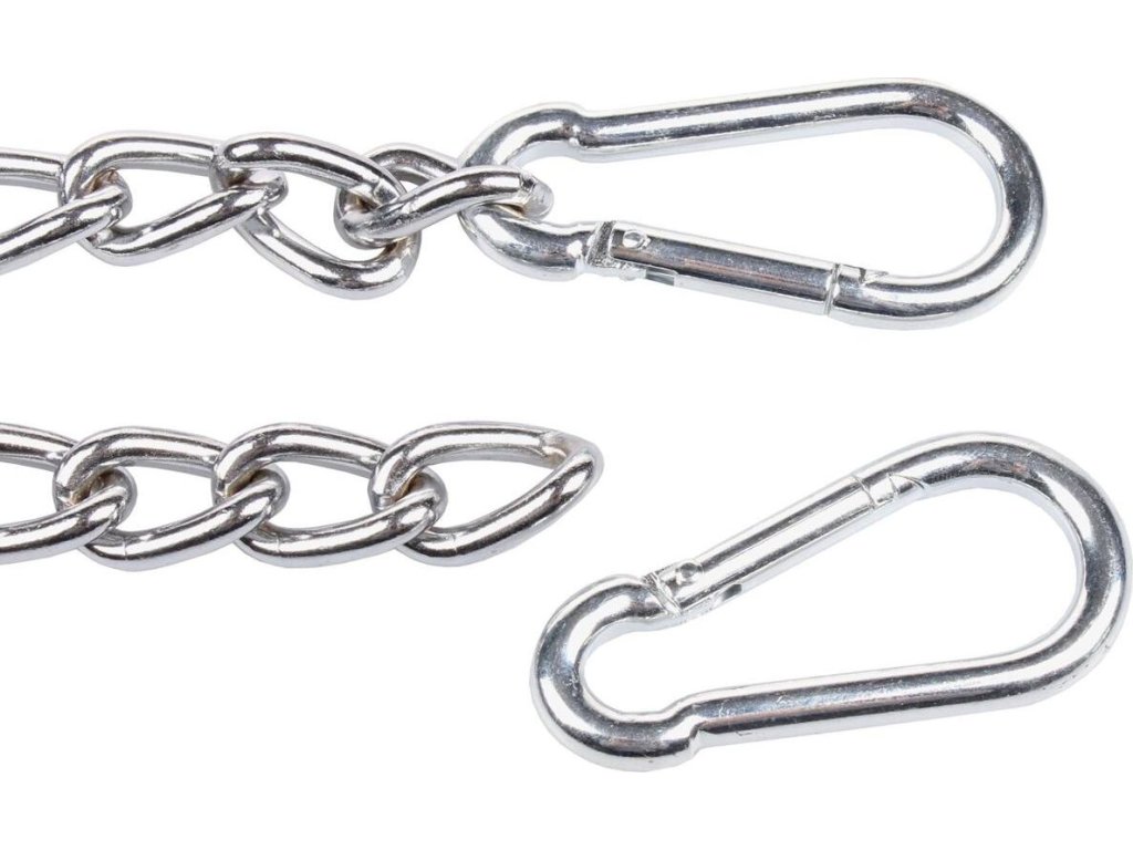 Náhradní řetěz s karabinami Merco Chain 66 využijete doma či na zahradě pro houpací sítě, boxovací pytle, houpačky, závěsná křesla apod. Ocelový řetěz má délku přibližně 56 cm, délka karabin je 7 cm a nosnost řetězu je do 120 kg. Hmotnost celého balení je 320 g. Uvedená cena platí pro 1 ks.