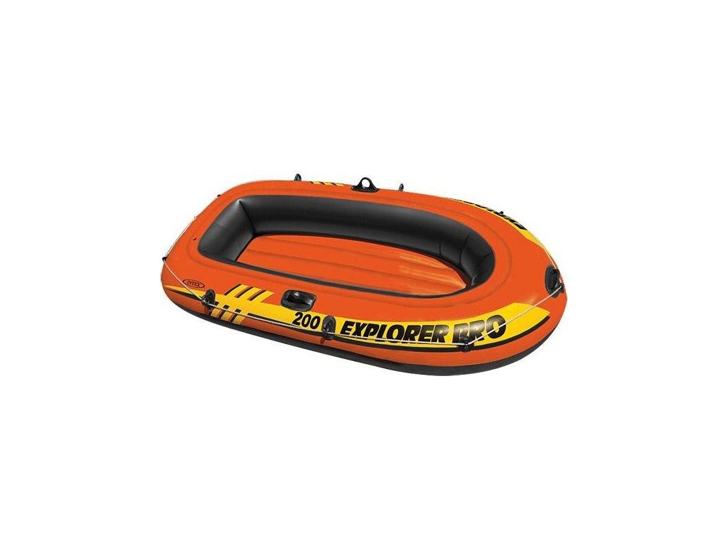 Nafukovací člun INTEX Explorer Pro 200 - rozměry 196 x 102 x 33 cm - 3 vzduchové komory - nafukovací podlaha - doporučené maximální obsazení jeden dospělý, jedno dítě, doporučeno pro dětí od 6 let, nosnost 120 kg, oka na pádla, síla stěn 0,3 mm, hmotnost 3,9 kg, materiál PVC bez použití ftalátů, součástí balení záplaty na opravu, provaz po obvodu lodi pro lepší uchycení