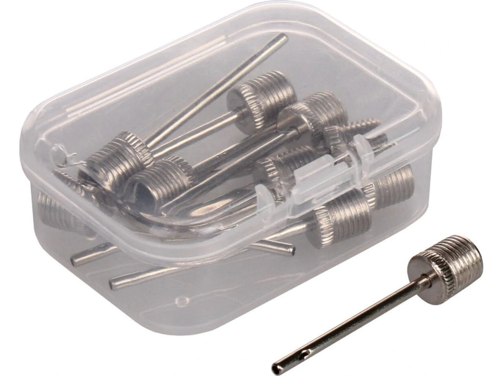 Merco Compress Box 10 obsahuje deset kovových jehel ke kompresoru pro nafukování sportovních míčů (na fotbal, basketbal, volejbal, házenou apod). Míče vždy tlakujte s navlhčenou jehlou, jinak může dojít k poškození ventilku. Pokud máte doma ruční pumpičku, nabízíme i náhradní jehly Filer. - pro kompresory - balení: 10 ksDoplňkové parametry