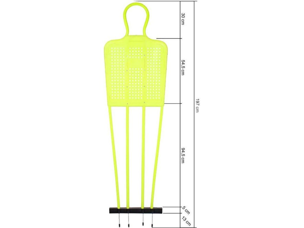 Celoplastová figurína Defence Mannequin s výškou 180 cm a hmotností 3,5 kg slouží k nácviku přesnosti přímých kopů, nácviku herních situací při zahrávání trestných kopů a zároveň i jako tréninková pomůcka pro fotbalové brankáře při těchto situacích. Tréninková figurína Defence Mannequin ve výrazné neonově žluté barvě je vybavena čtyřmi ocelovými 13 cm dlouhými bodci pro stabilní ukotvení do travnatého hřiště. Tato užitečná pomůcka by měla být součástí tréninkové výbavy každého fotbalového klubu. Pro používání figuríny na umělém, nebo jiném pevném povrchu můžete zakoupit stojan Defence Mannequin Base.