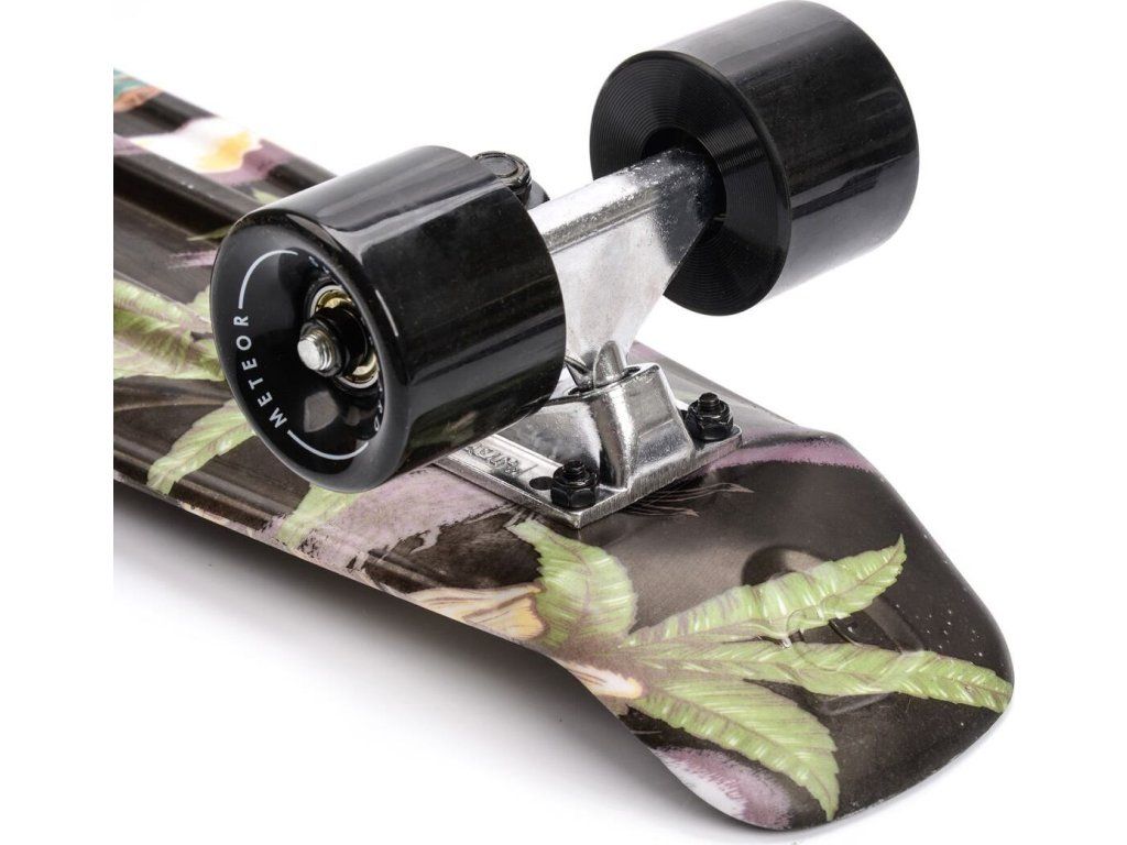 Nejnovější model skateboardu Meteor, který navazuje na populární vinylový skateboard sedmdesátých a osmdesátých let za použití moderních technologií. Plastový skateboard Flip Multi je ideální pro jízdu ve městě po přeplněných chodnících. Je velmi lehký a výrazně menší než běžné skateboardy, což umožňuje jednoduchou a rychlou změnu směru a dokonalý pohyb. Protiskluzový povrch zabraňuje sklouznutí ze skateboardu a polyuretanová kolečka se dokonale přizpůsobí povrchu a tlumí nárazy. Skateboard je vyrobený z kombinace odolného PP plastu a hliníku. Rozměr desky je 56 x 15 cm, rozměr koleček 6 x 4,5 cm, ložiska ABEC 7 zajišťují plynulou jízdu, hmotnost skateboardu je přibližně 1,8 kg. Maximální nosnost skateboardu Meteor je do 100 kg. Upozornění: Skateboard je určen pro jízdu na suchém, hladkém a tvrdém povrchu bez ostrých nerovností a děr. Tento skateboard není určen pro pokročilé triky. Neměl by se používat ke skákání nebo jízdě po schodech. Uživatel by měl vždy nosit helmu a ochrannou výstroj na zápěstí, kolena a lokty.Doplňkové parametry