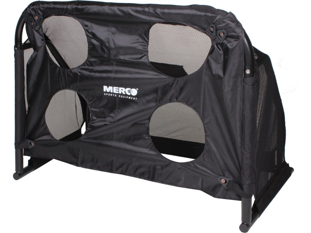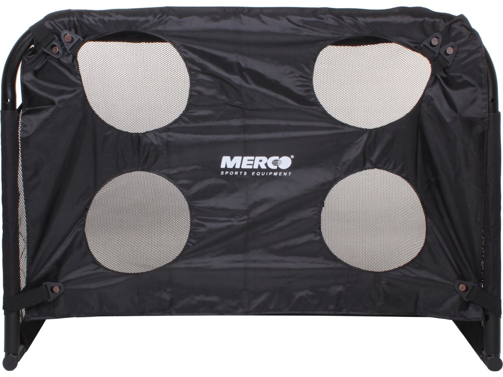Fotbalovou branku Merco Goalpost s plachtou Merco Target Vám můžeme jenom DOPORUČIT. Robustní, ale zároveň až překvapivě lehká ocelová konstrukce s průměrem 38 mm a povrchovou úpravou práškové barvy spolu se sítí z jemné a zároveň dostatečně pevné polyesterové síťoviny obšité širokým pruhem odolné tkaniny uspokojí potřeby každého fotbalisty i fotbalového týmu, jenž uvažuje o pořízení snadno přenosné, případně i skládací tréninkové fotbalové branky. Branka se jednoduše a rychle skládá i rozkládá pomocí speciálního zacvakávacího systému a pouze na dvou místech jsou použity šrouby, které jsou spolu s klíčem součástí balení. Součástí branky Merco Goalpost jsou i kotvy k zajištění branky před samovolným pohybem a hlavně je součástí branky plachta Merco Target, která je vyrobená z polyesteru vyztuženého PVC a jejím cílem je zdokonalení přesnosti střelby, k čemuž slouží čtyři otvory o průměru 25cm rozmístěné po plachtě. Aby byla naše nabídka opravdu dokonalá a uspokojila všechny zájemce, je tento model k dispozici ve třech dobře promyšlených rozměrech, tak aby si každý vybral tu svou správnou velikost, přesně podle svých potřeb.