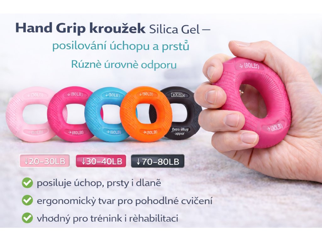 Masážní posilovací kroužek je jednoduchá, ale velmi účinná pomůcka pro posilování rukou. Pomáhá zlepšovat sílu stisku, posiluje svaly dlaní, prstů i předloktí a zároveň díky výstupkům jemně masíruje dlaň během cvičení.