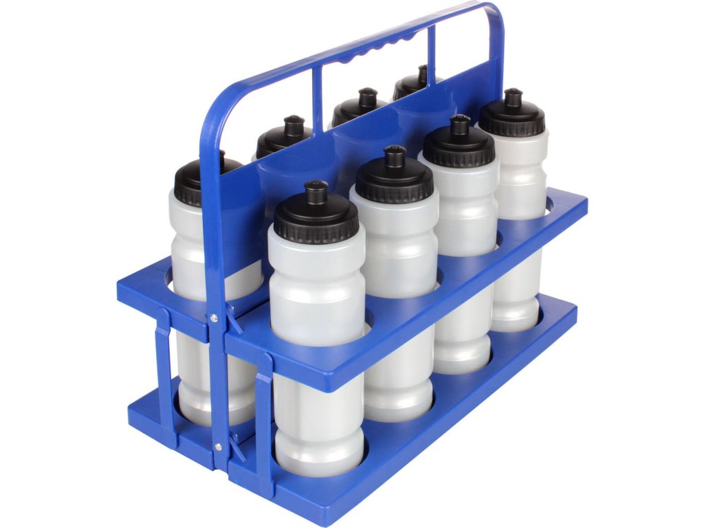 Skládací nosič lahví Merco Holder 8 je praktická pomůcka pro přenášení nápojů během tréninků, sportovních utkání či volnočasových aktivit. Lehký nosič je určený pro 8 lahví s maximálním průměrem 8,5 cm. Je vyrobený z odolného polypropylenu, jeho rozměry po rozložení jsou 45 x 24 x 35 cm a hmotnost samotného nosiče je přibližně 0,8 kg. Usnadněte si nošení pití pro svůj tým s nosičem Merco Holder 8. Parametry: - materiál: PP - pro 8 lahví s průměrem do 8,5 cm - rozměry: 45 x 24 x 35 cm (délka x šířka x výška) - složený: 45 x 32 x 6,5 cm - hmotnost: cca 0,8 kgDoplňkové parametry