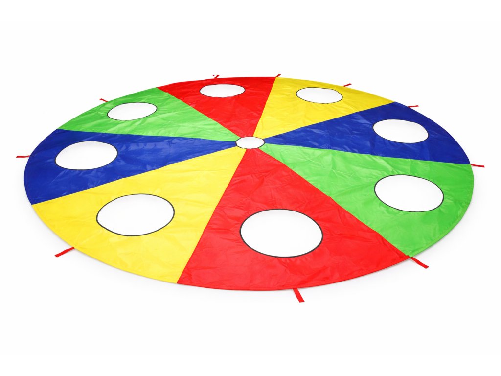 Tento hrací padák s otvory pro děti je oblíbenou pohybovou a motorickou pomůckou pro skupinové hry ve školkách, školách i volnočasových kroužcích. Díky otvorům (dírám) v padáku nabízí více herních možností než klasický padák a podporuje aktivní zapojení všech dětí.