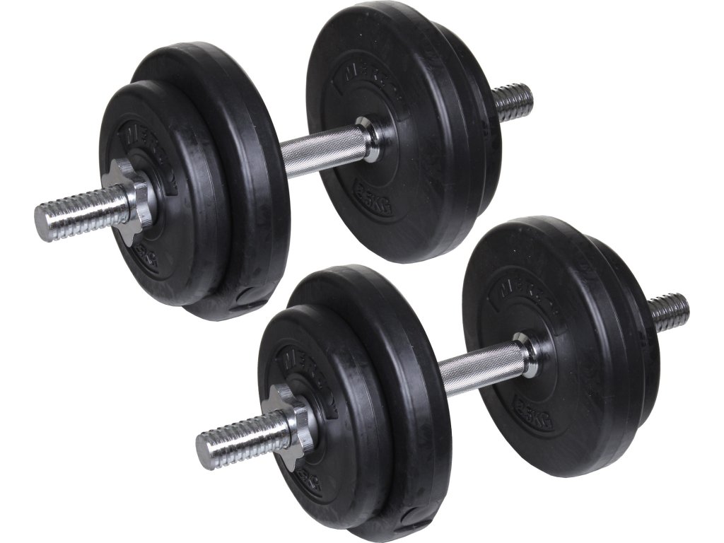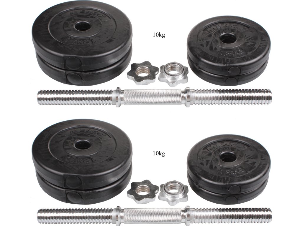 Pokud s posilováním teprve začínáte nebo už jste pokročilý "fitnesák" a hledáte na doma kvalitní železo, sada jednoručních činek Merco je to pravé! Sadu tvoří nakládací činky 2 x 10 kg, dvě ocelové osy (2 x 2,5 kg) o rozměru 30 x 450 mm včetně uzávěrů a plastové kotouče (4 x 1,25 kg + 4 x 2,5 kg) vyplněné cementem. Merco jednoruční nakládací činky 2 x 10 kg ocení všichni kulturisti bez výjimky.