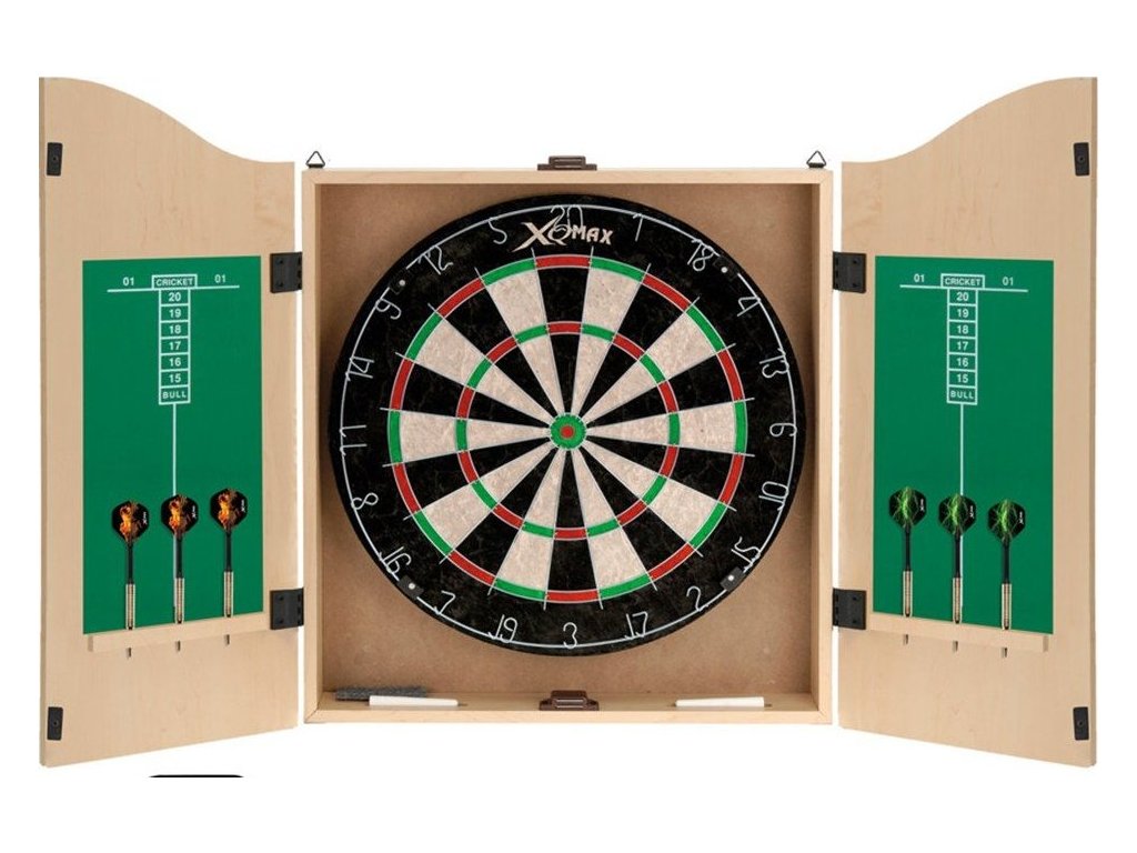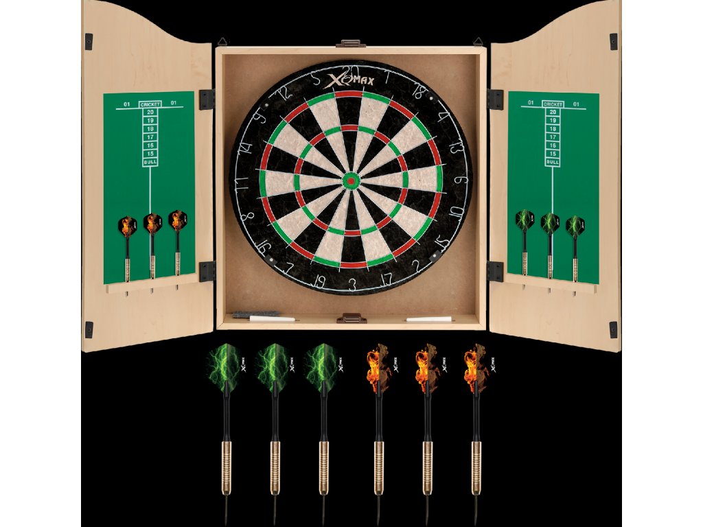 XQMax Home Darts Centre je sada, která obsahuje kabinet s tabulkou pro zápis skóre (uvnitř dvířek), sisalový terč s kulatými dráty a 2 sady mosazných šipek. Vyrobeno z prvotřídního afrického sisalu, který poskytuje vysokou pevnost a odolnost.