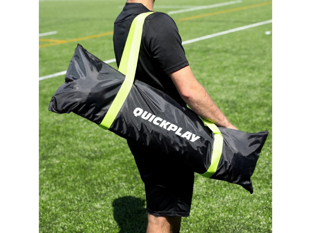 Značka Quickplay představuje řadu fotbalových branek na trénink Kickster ELITE. Oproti klasickému modelu tato branka ELITE nabízí gumové podložky na spodní straně základny, silnější tyče a stabilní zatíženou základnu a díky tomu je tento model vhodný pro tvrdé povrchy jako umělý trávník, beton či do tělocvičny. Tato branka na fotbal je díky své konstrukci lehce skládací a pomocí přiloženému vaku ji jednoduše uskladníte a přenesete mezi jednotlivými tréninky. Je navržená tak, aby byla odolná a přenosná, s patentovaným systémem FLEXI POST využívajícím kombinaci oceli a skelných vláken v rámu spolu s flexibilní látkovou příčkou a systémem sloupků. Branka Kickster ELITE je vhodná pro individuální trénink i pro fotbalové kluby. Branka obsahuje také kolíky pro upevnění do země. - materiál: ocel, sklolaminát. PE - rozměry: 183 x 122 x 75 cm - hmotnost balení: cca 8,7 kg - rozměry balení: 83 x 20 x 16 cm - jednoduchá a rychlá montážDoplňkové parametry