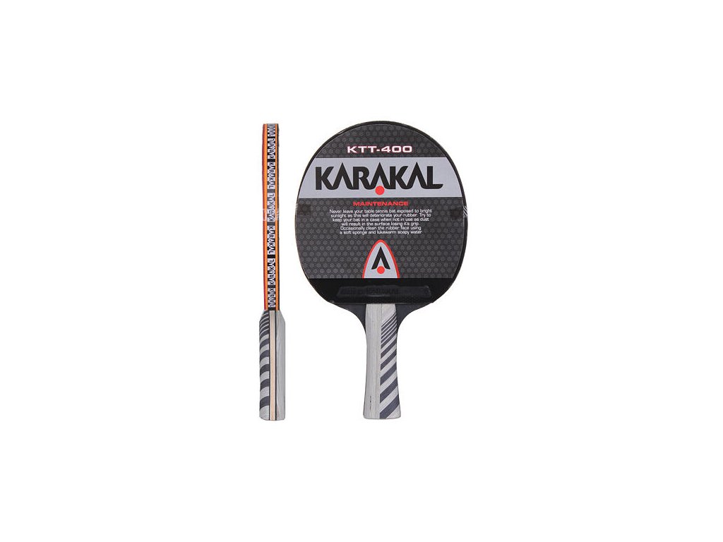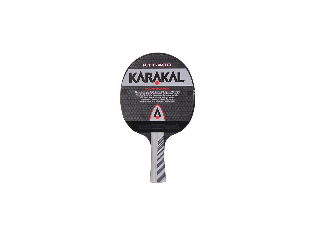 Karakal KTT-400 je standardní turnajová pálka na stolní tenis, vyrobená ze sedmi vrstev lehounké a zároveň tuhé africké vrby Abachi. Pálka je vybavená 2 mm silnou houbou, která generuje rychlost s rotací a útočným potahem Karakal Gold 30W (ten je o něco měkkčí, než u modelu KTT-500). Karakal KTT-400 je pingpongová pálka pro pokročilé hráče, jenž preferují útočný styl hry. Pálka je vybavena obrysovým obalem na zip. Hmotnost pálky je 200 gramů.