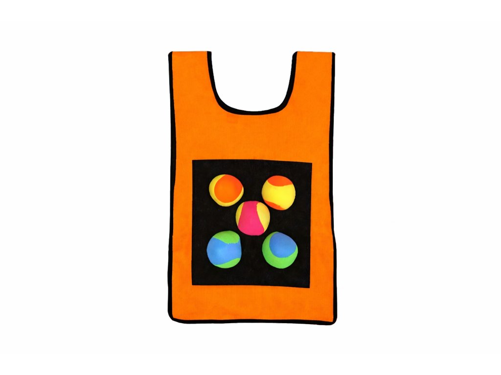 Lepicí vesta s míčky pro děti – pohybová hra SOFT oranžová (5 ks míčků)