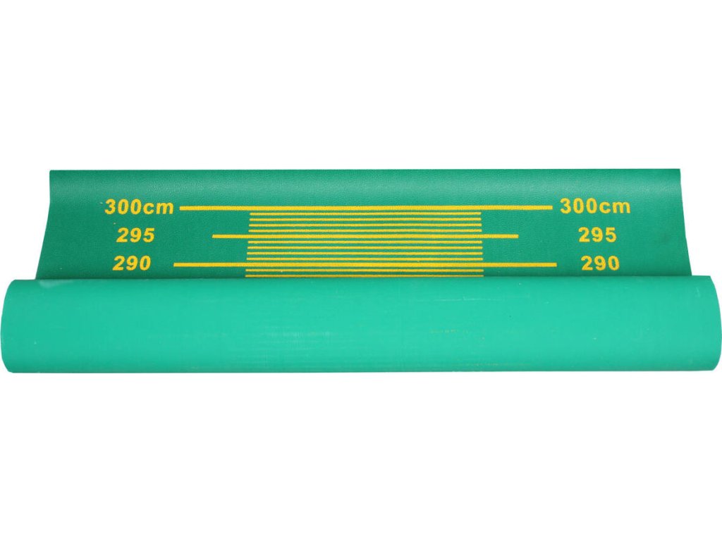 Skok daleký snožmo se provádí z rovné, pevné a neklouzavé plochy do pískoviště, na žíněnku nebo k tomu určenou podložku s tím, že odrazová a dopadová plocha musí být na stejné úrovni. Merco měřící podložka pro skok do dálky z místa všechny tyto požadavky 100% splňuje. Merco měřící podložka pro skok do dálky snožmo je vyrobená z 3,5 mm silné těžké gumy, která neklouže, pohlcuje nárazy a hluk, vyniká vyjímečnou životností, je odolná vůči UV záření, je nehořlavá, zdravotně nezávadná, bez zápachu a velice snadno se udržuje. Měřící podložku pro skok daleký z místa značky Merco nabízíme v červeném a zeleném provedení. Obě barevné varianty v rozměru 3,5 x 1 m a obě varianty s kontrastním a dlouhotrvajícím potiskem odrazové značky a měřítka od 50 do 300 cm vyobrazeného po 1 cm. A ještě jednou k pravidlům. Skákající osoba se z vyznačeného místa odrazu z úzce rozkročného stoje snaží snožmo skočit co nejdál vpřed. Povoleny jsou pomocné pohyby paží a trupu, naopak není dovolen poskok před odrazem. Délka skoku se měří od odrazové čáry po patu nohy, která je blíž k místu odrazu. Váš výsledný výkon si pak můžete porovnat v naší výkonnostní tabulce, kterou jsme umístili mezi ostatní fotografie produktu.