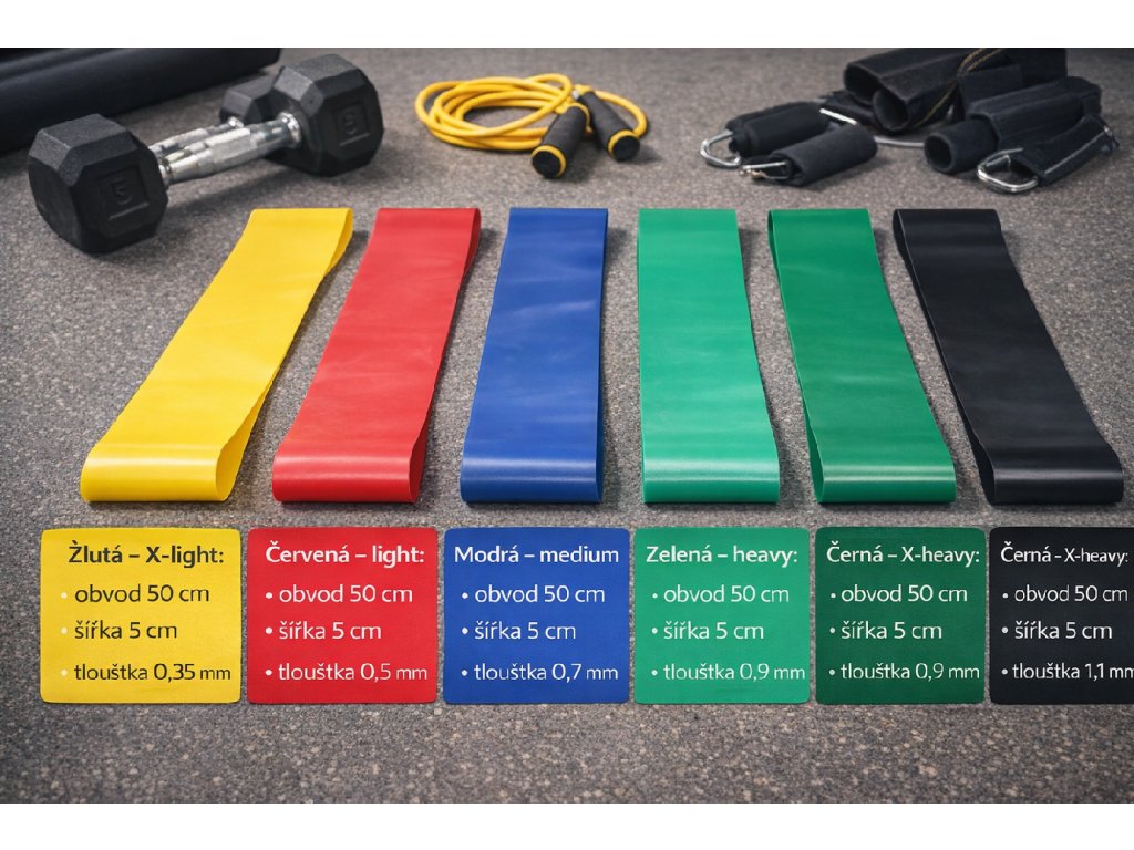 Guma je vyrobena ze zdravotně nezávadného materiálu, je příjemná na dotek a odolná při pravidelném používání. Jednotlivé úrovně odporu jsou přehledně rozlišené barvou, což usnadňuje výběr správné obtížnosti.