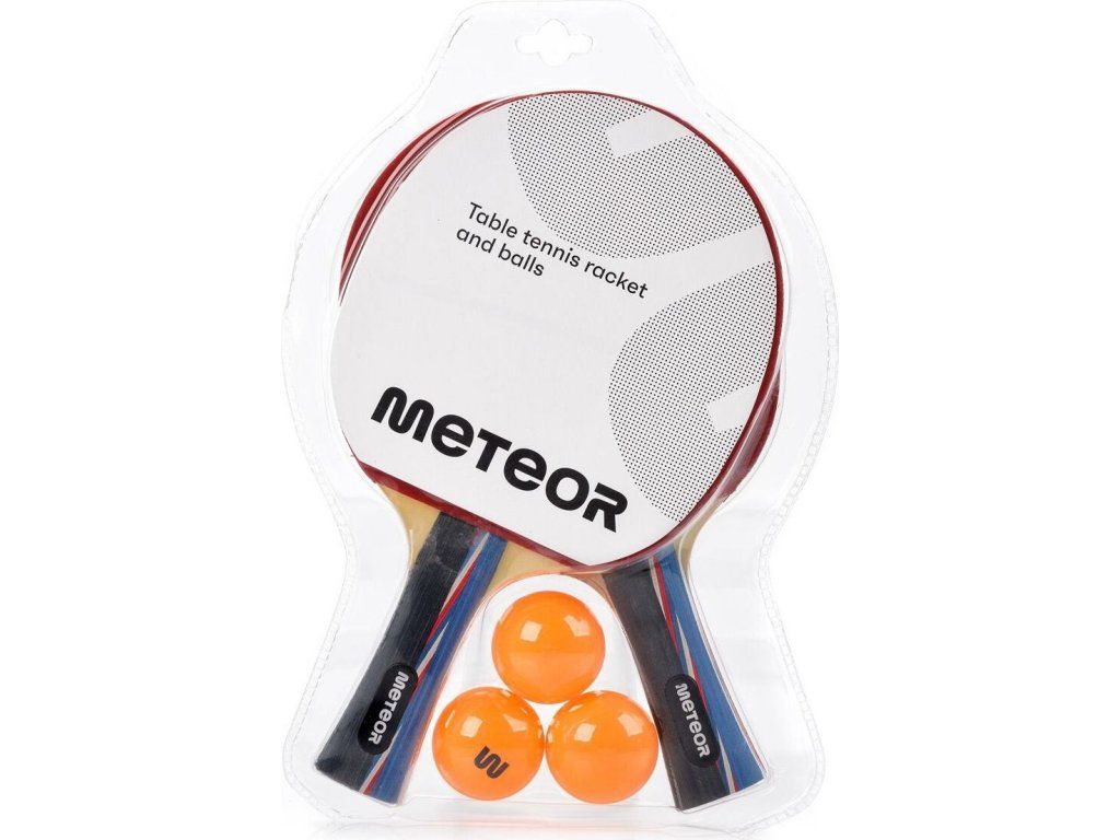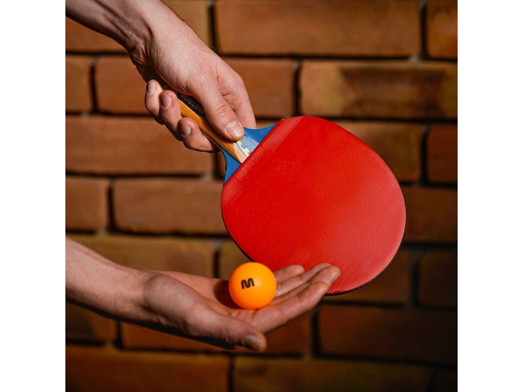 Set na stolní tenis Meteor Mistral*** se skládá ze dvou kvalitních pálek a tří míčků. Pálka na stolní tenis Meteor Mistral*** je vhodná pro rekreační hráče i pro zkušenější a pokročilé hráče. Pálky Mistral*** jsou vyrobené z kvalitních materiálů – dřeva, PU pěny a pryže – které zaručují dobrou odolnost a dlouhou životnost. Díky ergonomickému tvaru rukojeti se pálka snadno přizpůsobí Vaší ruce. Pálky byly vyrobené pomocí nejmodernějších technologií, díky kterým tak budou splňovat i požadavky náročnějších hráčů. Optimální rychlosti je dosaženo použitím elastické gumy pro vynikající kontrolu a trakci. Dřevěná rukojeť zaručuje velmi dobrý grip, díky čemuž je pálka vhodná pro útočný styl hry. Parametry: Rychlost: 9/10 Rotace: 7/10 Kontrola: 7/10 Délka rukojeti: 100 mm Šířka rukojeti: 33 mm Tloušťka hlavy: 12.5 mm Hmotnost pálky: 168 g Plášť: 1.8 mm Vrstvy: 5 Barva: černo-červenáDoplňkové parametry