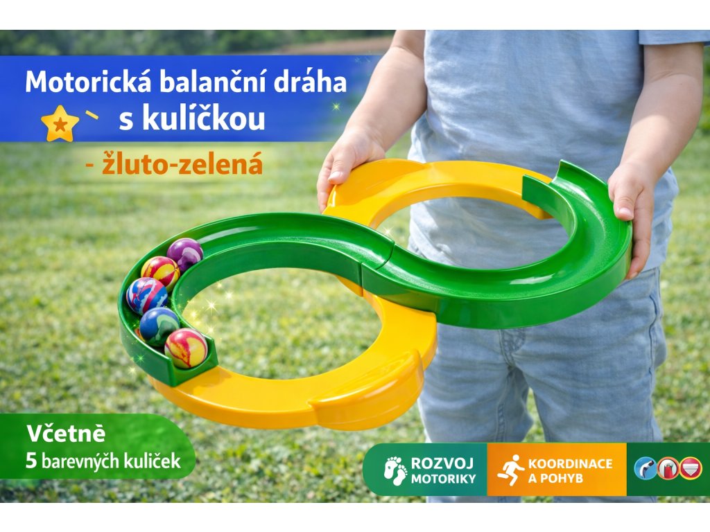 Motorická balanční dráha s kuličkou – zeleno/žlutá koordinační hra pro děti