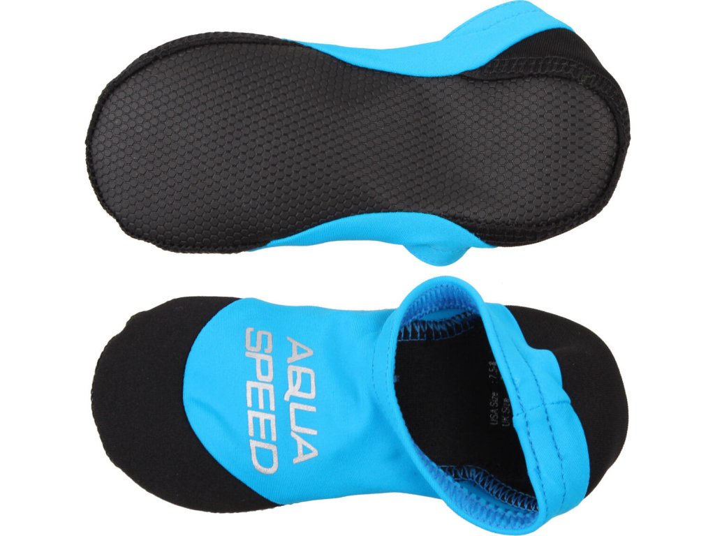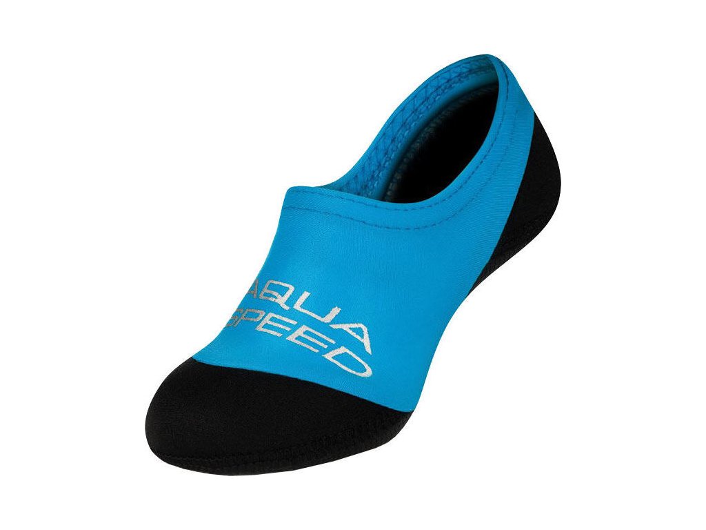 Dětské neoprenové ponožky Aqua-Speed Neo jsou více, než jen zajímavý doplněk pro děti na pláž nebo k bazénu. Ponožky jsou skladné, lehké, pohodlné, snadno se nazouvají, nebrání v přirozeném pohybu a hlavně poskytují ochranu před horkým pískem, chrání chodidla na kamenitých plážích a v případě bazénů minimalizují riziko uklouznutí. Ponožky jsou vyrobeny z měkkého a elastického materiálu v horní části a silnějšího neoprenu na podrážce s protiskluzovým povrchem.