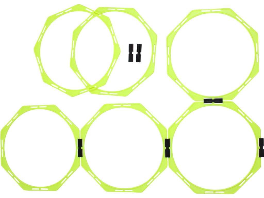 Merco Octa Ladder, sada šesti kusů proskakovacích osmiúhelníků slouží ke kondiční přípravě sportovců a to stejně jako různé agility žebříky a proskakovačky. Zásadní rozdíl mezi těmito produkty je ale ve variabilitě. Zatím co pevné žebříky mají dané parametry, u sady proskakovacích osmiúhelníků Merco Octa Ladder si můžete pomocí spojek, které jsou součástí každého dílu, vytvořit trať přesně podle svých potřeb a požadované obtížnosti. Sada Merco Octa Ladder Vám umožní vytvářet nekonečné množství různých variant a obtížností při tréninku rychlosti, rovnováhy a koordinace bez ohledu na Vaše sportovní zaměření. Vnitřní průměr osmiúhelníku je 44,5 cm.