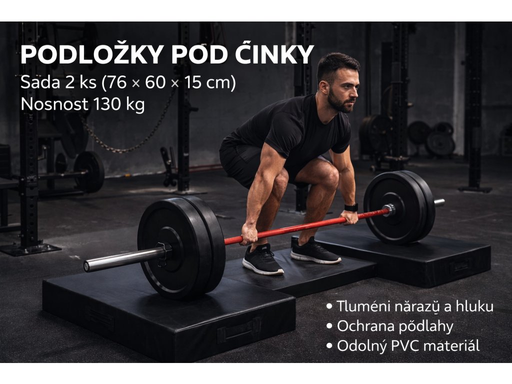 Díky rozměru 76 × 60 × 15 cm poskytují dostatečnou stabilitu i při vyšší zátěži. Nosnost 130 kg zajišťuje spolehlivé použití při tréninku s těžšími váhami.
