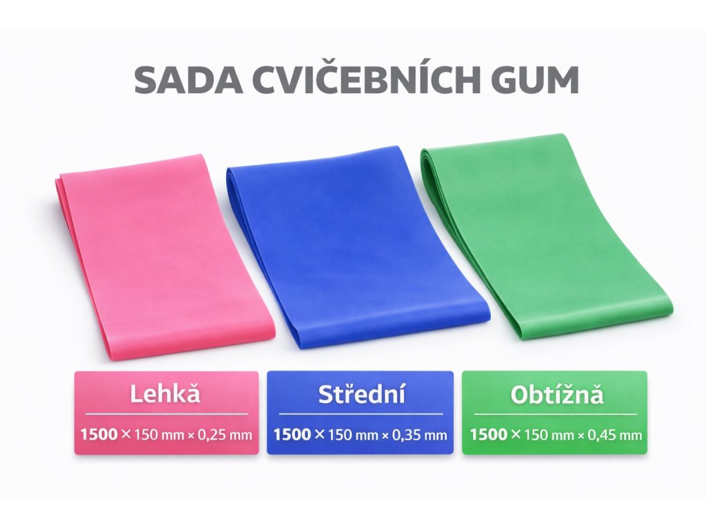 Cvičební gumy nabízíme v 3 obtížnostech: