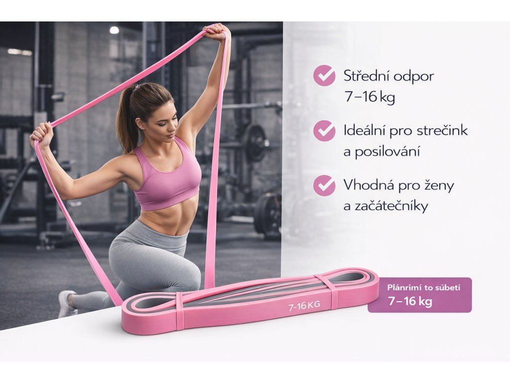 Posilovací guma Power Band TPE – růžová (7–16 kg)