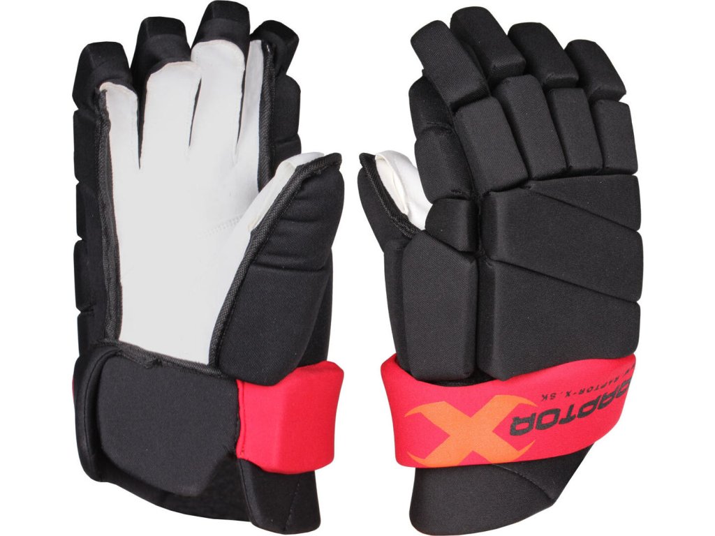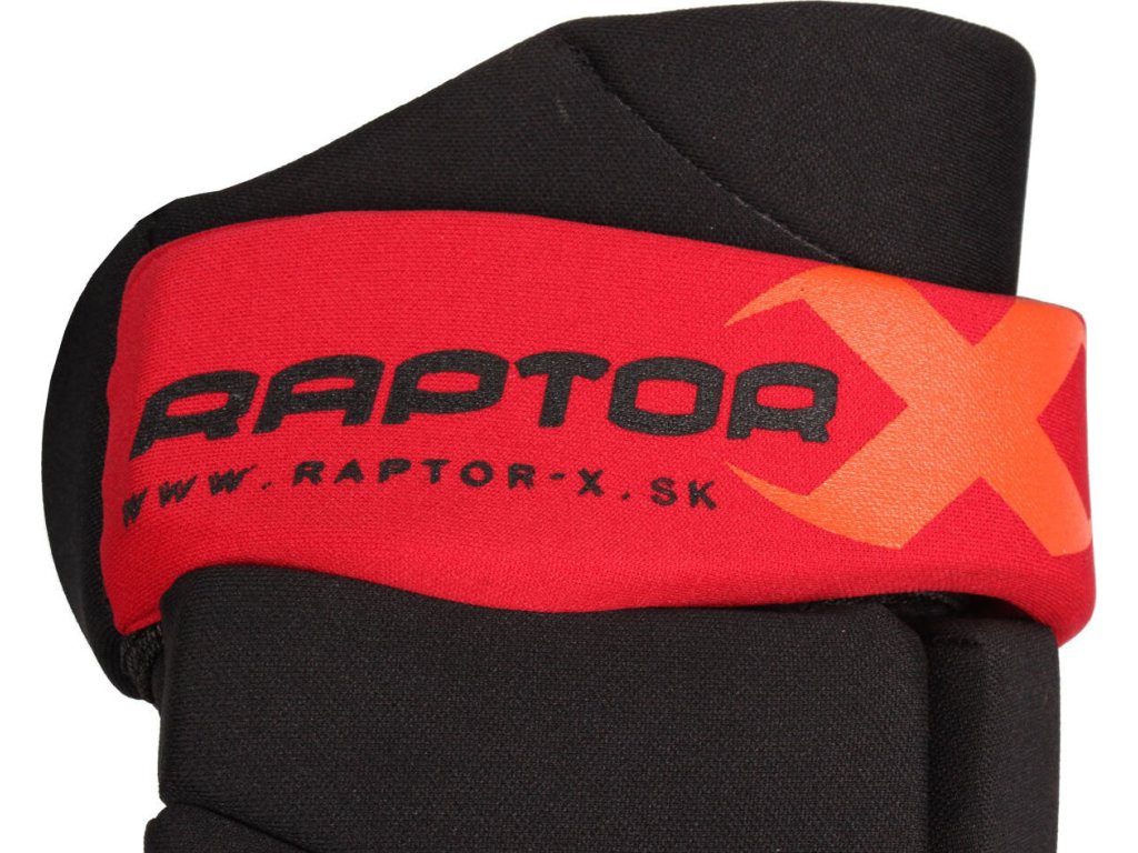Hokejové rukavice Raptor-X se vyznačují svojí odlehčenou konstrukcí, díky čemuž je zajištěno maximální pohodlí a cit pro hru. Rukavice jsou moderního střihu, kdy hřbet ruky je třídílný a prsty rukavic jsou dvoudílné. Zápěstí ruky je chráněno zesílenou manžetou. Palec ruky je chráněn plastovou výztuhou a pro lepší pohyblivost je dvoudílný. Dlaň rukavic je vyrobená z jemné kůže - klarina a v nejvíce namáhaném místě v oblasti dlaně je kůže zdvojená. Rukavice jsou díky své odlehčené konstrukci určené především na hokejbal, lze je však využít pro děti či amatéry i na klasický lední hokej.Doplňkové parametry