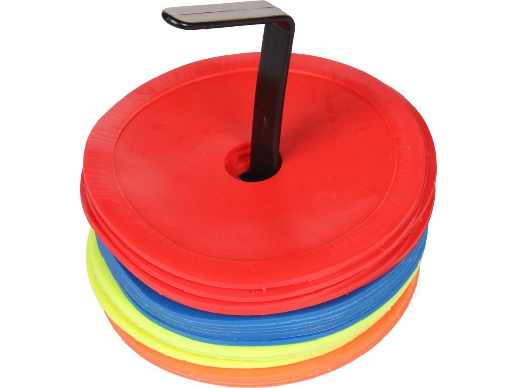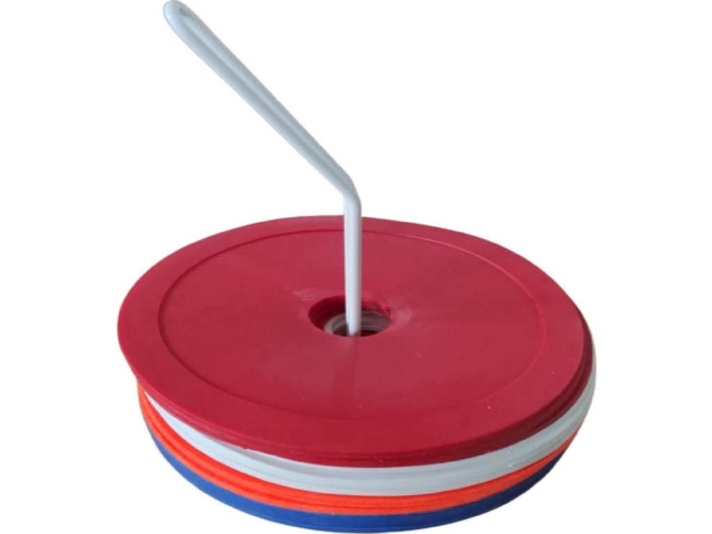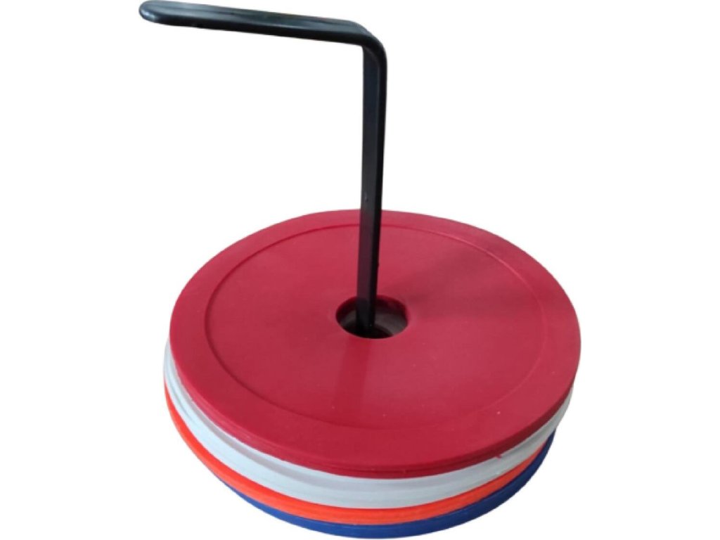 Sada 16ti kusů značek na podlahu Ring včetně stojánku pro jednoduché přenášení a uskladnění. Značka na podlahu Ring je praktická tréninková pomůcka, díky které trenér během chvilky vytvoří agility dráhu či ohraničení cvičební zóny. Značka na podlahu ve tvaru kruhu je vyrobená z termoplastické gumy (TPR), která vyniká svou odolností a značka je tak vhodná pro venkovní tréninky i do tělocvičen. Značka Ring má celkový průměr 15 cm, průměr vnitřního otvoru 2,5 cm a její hmotnost je přibližně 50 g.