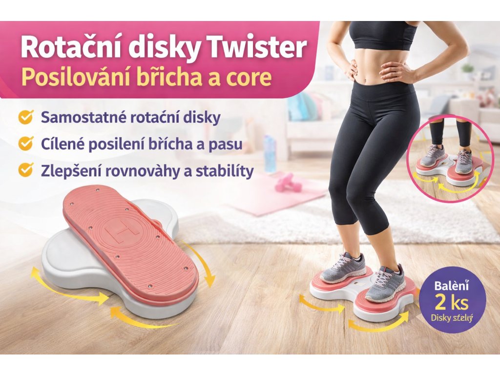 Disky mají plynulý chod, takže se otáčí lehce a cvičení je příjemné i doma. Hodí se pro fitness, zpevnění postavy, koordinaci i jako jednoduché doplnění tréninku.