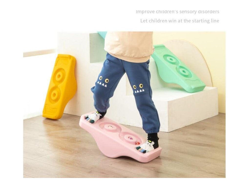 Balanční deska Sensory Balance Board slouží jako zábavná forma tréninku koordinace, rovnováhy, motoriky a trpělivosti u dětí. Sensory Balance Board lze používat jako houpací balanční desku, bludiště pro kuličku, stepper nebo s více kusy jako motorickou dráhu. Na desce mohou děti stát, pohupovat se, naskakovat a seskakovat nebo se snažit dostat kuličku v labyrintu na své místo. Balanční desku doporučujeme používat na koberci, cvičební podložce nebo jiném neklouzavém povrchu. Upozornění: Výrobek není vhodný pro děti do 3 let! Vždy používejte pod dohledem dospělé osoby. - sada: balanční podložka, 2x gumová kulička - materiál: PE plast - rozměry: 48 x 19 x 13 cm - maximální nosnost: 50 kgDoplňkové parametry