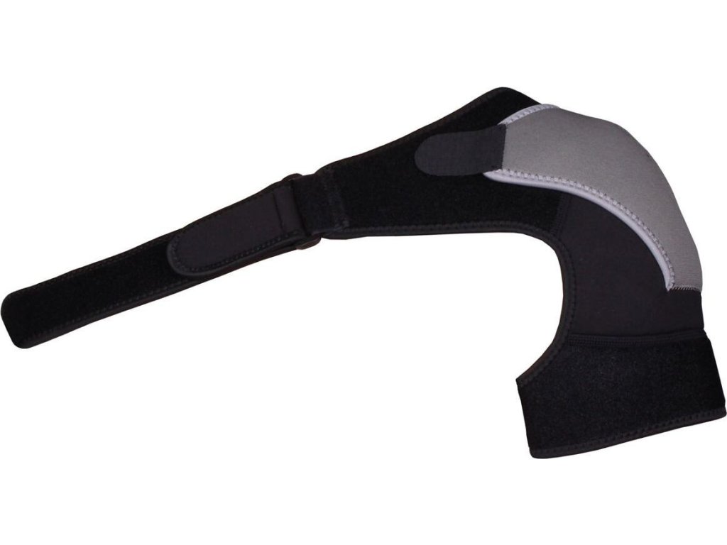 Elastická bandáž Merco SH01 z neoprenového materiálu slouží k preventivnímu zpevnění a stabilizaci ramene při intenzívnější zátěži během různých sportovních aktivit, při turistice, nebo při práci. Přispívá ke zmírnění únavy ramenního kloubu a k rychlejší následné regeneraci, může sloužit i jako tepelná ochrana. Přestože bandáž rameno zpevňuje, neomezuje díky své elasticitě nijak výrazně jeho hybnost. Bandáž nabízíme v jedné univerzální velikosti, kterou lze přizpůsobit každé postavě a to díky nastavitelnému upevňujícímu pásu se suchými zipy a suchým zipům v dolních rozích horní trojúhelníkové části bandáže. Návlek je vhodný na levé i pravé rameno.