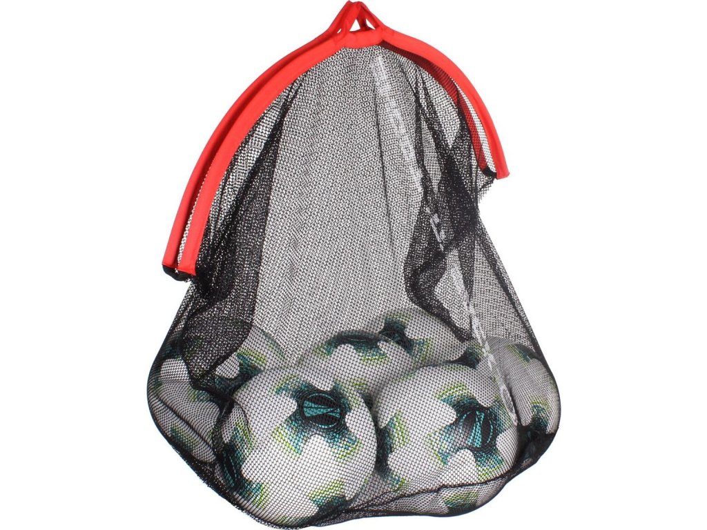 Merco Shoot Sack je praktická tréninková pomůcka pro každého fotbalistu nebo fotbalový klub. Na tréninku Shoot Sack skvěle poslouží nejen jako přenosný vak na míče (10 ks), ale zároveň ho díky poutku na suchý zip můžete připnout do horního rohu jakékoliv fotbalové branky. Rázem se tedy z této pomůcky stává střelecký terč. Terč je vybavený kovovými tyčemi, a proto vždy pevně drží svůj tvar. V polovině kruhu má terč pevný látkový spoj, což zajišťuje mnohem větší praktičnost pro následné uskladnění této tréninkové pomůcky.