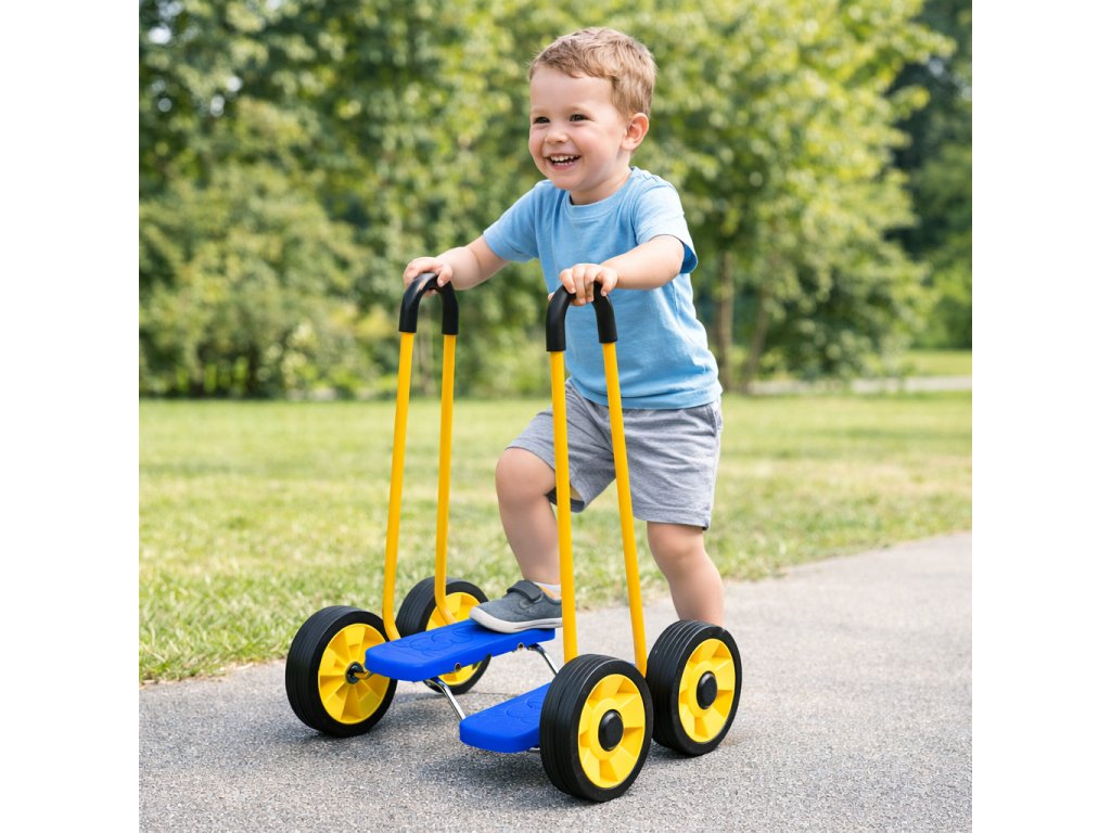 Šlapadlo s držadly je oblíbená dětská balanční a motorická pomůcka, která přirozenou formou podporuje pohybovou aktivitu dětí. Při jízdě dítě zapojuje svaly dolních končetin, trénuje rovnováhu, koordinaci pohybů a stabilitu těla. Pravidelné používání napomáhá ke zlepšení motorických dovedností, prostorové orientace i celkové tělesné zdatnosti.