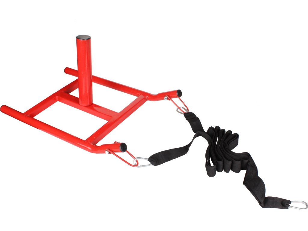 Unikátní výrobek pro trénink startů, zlepšení rychlosti a zrychlení. Součástí ocelových zátěžových saní je jednoduchá vesta s polstrováním na ramenou, popruh (275 cm) s karabinami pro zapřažení a dva kolíky o různých průměrech pro zátěžové kotouče. Zátěže nejsou součástí. Váha saní bez závaží je 2,15kg