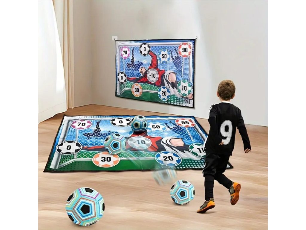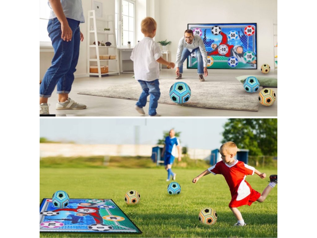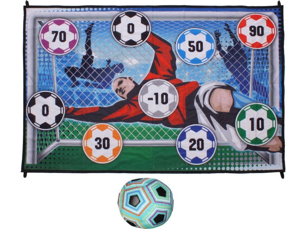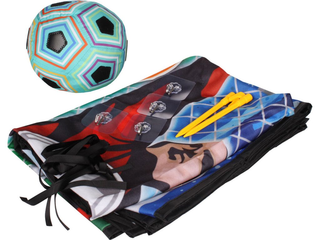 Pokud hledáte zábavnou hru pro své dítě a zároveň u něj už co nejdříve rozvíjet pohybové schopnosti a chuť ke sportu, je fotbalový trenažér Merco Soccer Game Indoor vhodný právě pro vás! Tato fotbalová sada obsahuje textilní terč s rozměry 150 x 100 cm, měkký míček vyplněný bavlnou, se suchými zipy na povrchu a průměrem 16 cm, dva plastové kolíčky do země, čtyři popruhy a čtyři háčky. Fotbalový trenažér můžete používat uvnitř i venku. Terč můžete jen položit na zem, ale díky očkům v rozích jej můžete i připevnit doma na zeď či zavěsit venku do branky. Výrobek není vhodný pro děti mladší 3 let!