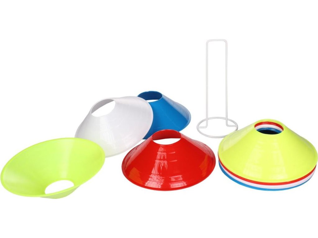 Vytyčovací mety Space vyrobené z měkčeného plastu jsou odolné proti prošlápnutí nebo jiné deformaci. Díky pestrým barvám jsou dobře viditelné. Mety slouží jako trenérská pomůcka při organizaci tréninků, ale své využití najdou také při trénování kondice nebo agility. Použít je lze jak při venkovních, tak vnitřních aktivitách. Balení obsahuje stojan (plastový nebo kovový) s 16 kusy met, které jsou rovnoměrně rozděleny do 4 barev. Výška jedné mety je 50 mm a průměr 190 mm.