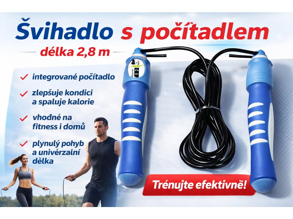 Jednoduché a praktické švihadlo s integrovaným počítadlem přeskoků pro každodenní trénink. Ideální pro zlepšení kondice, spalování kalorií i domácí cvičení. Lehký PVC materiál a univerzální délka 2,8 m zajišťují pohodlné použití.