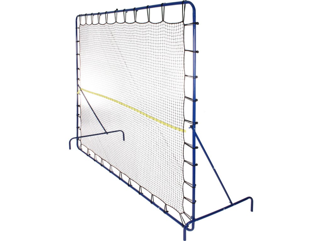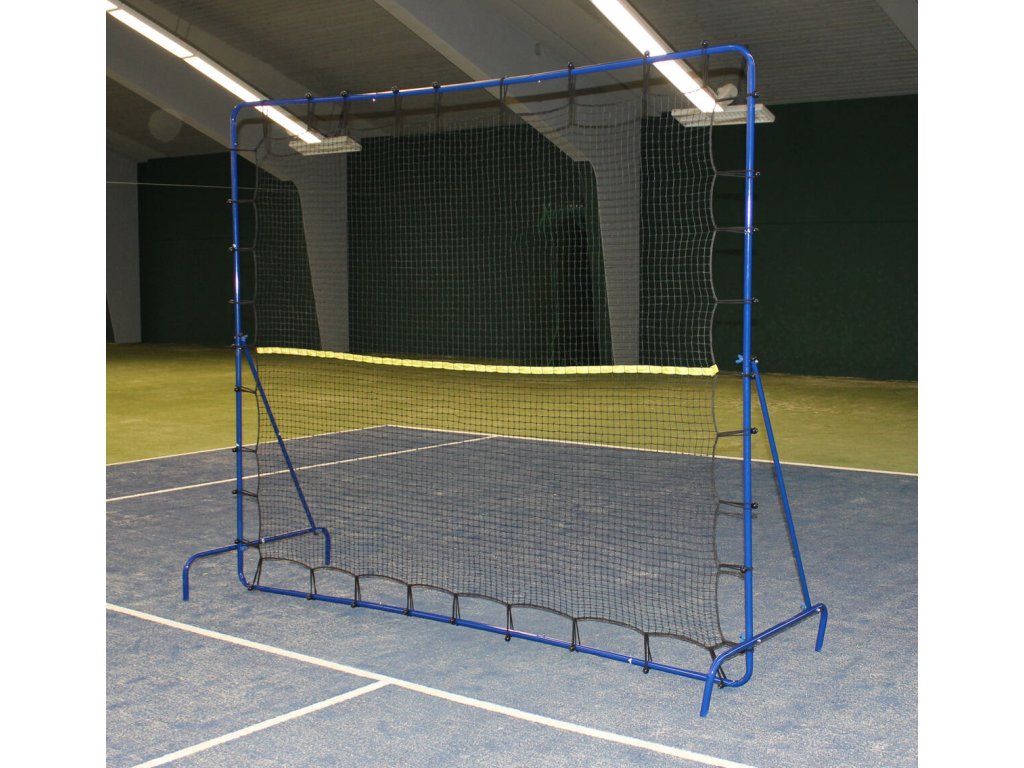 Tenisová odrazová stěna Tennis Slam Rebounder je vhodná pro všechny výkonnostní hráče tenisu - od juniorů až po pokročilé. Kovová odrazová stěna je v modrém provedení a její rozměry jsou 270 x 220 x 90 cm. Stěna má z obou bočních stran kovové stojany pro lepší stabilitu. Součástí balení je síť a elastické úchyty, kterými napnete a připevníte síť ke konstrukci. Konstrukci postavíte během pár minut díky zasouvacím trubkám a šroubům. Uprostřed napnuté sítě se nachází žlutá páska, která označuje střed a simuluje tak výšku pravé tenisové sítě. Hráč si tak může zkoušet různé druhy úderů, zlepšovat reakci, techniku, a míček se mu pokaždé vrátí zpět. Výhodou odrazových stěn je, že k trénování nepotřebujete parťáka a můžete trénovat kdekoliv – venku nebo uvnitř v hale.