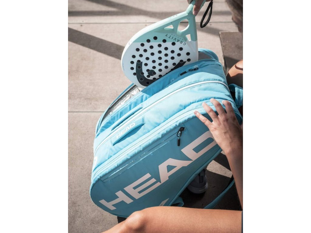 Padelová taška HEAD Tour Padel Bag L je ideální pro hráče všech výkonnostních úrovní, kteří hledají kvalitní bag pro kompletní vybavení na kurt. Taška je vyrobená v novém moderním designu, který nyní zahrnuje dvě nové velké vnější kapsy na zip na příslušenství a vnější kapsu na telefon, která umožňuje rychlý a snadný přístup. Ve třech hlavních přihrádkách můžete přenášet až 7 raket, z nichž jedna je vybavena technologií kontroly teploty CCT+, která chrání vaše rakety před extrémními teplotami. Dále taška nabízí jednu vnitřní kapsu na zip a oddělenou přihrádku na boty. Tento bag na padel můžete nosit klasicky v ruce nebo na zádech jako batoh díky dvěma nastavitelným popruhům. - objem: 40 l - rozměry: 60 x 28,5 x 36,5 cm - složení materiálu (vnější): 90% Polyester, 10% PU - složení materiálu (vnitřní): 80% Polyester, 20% TPEDoplňkové parametry