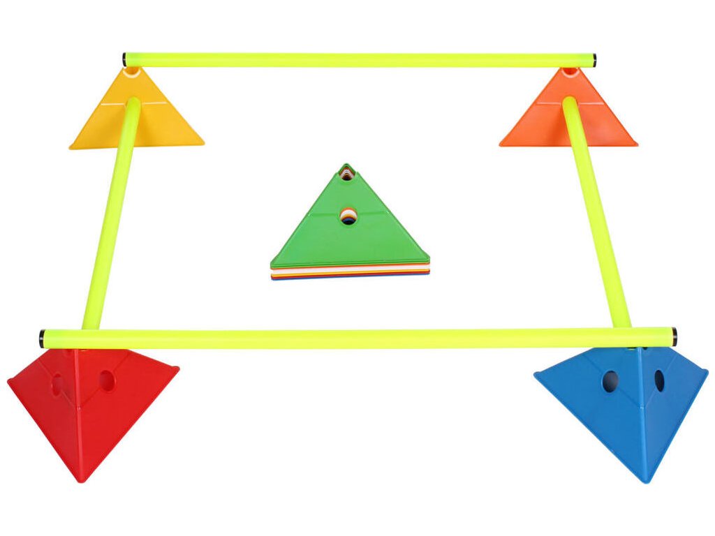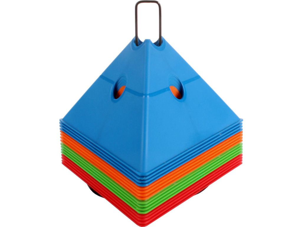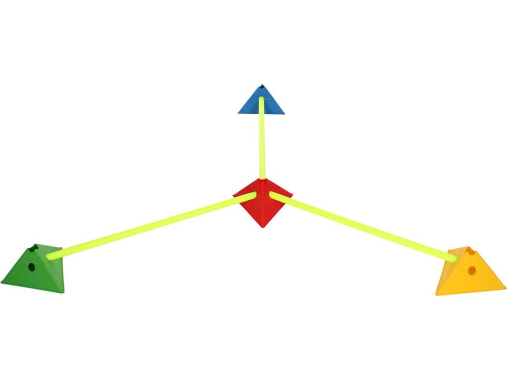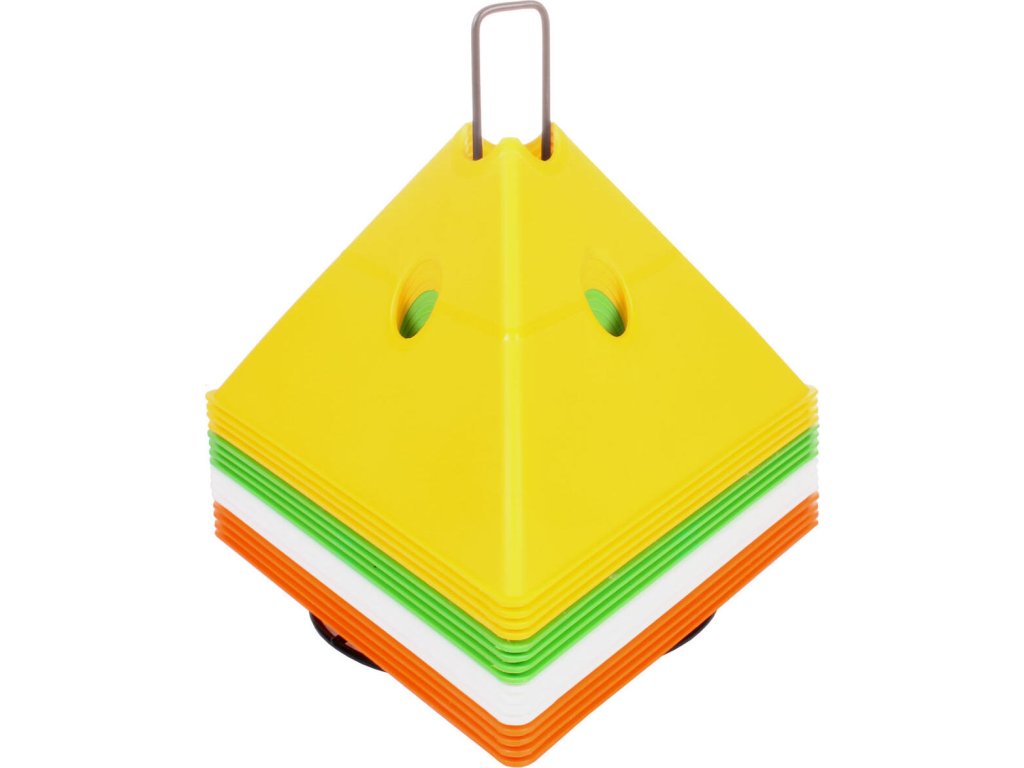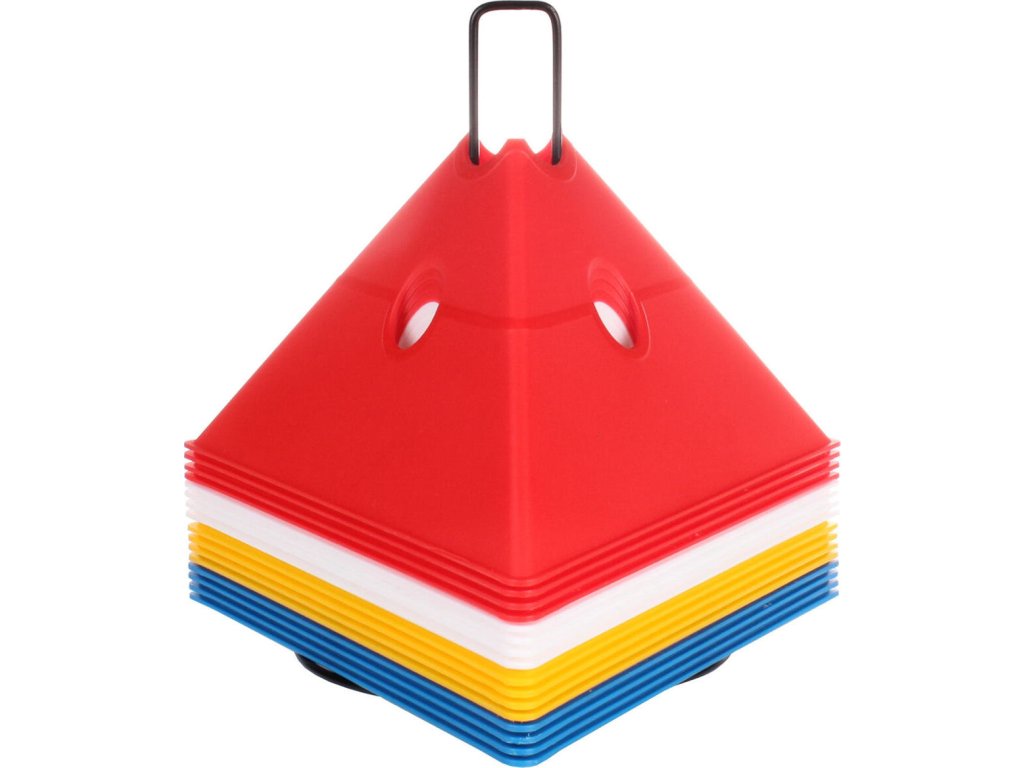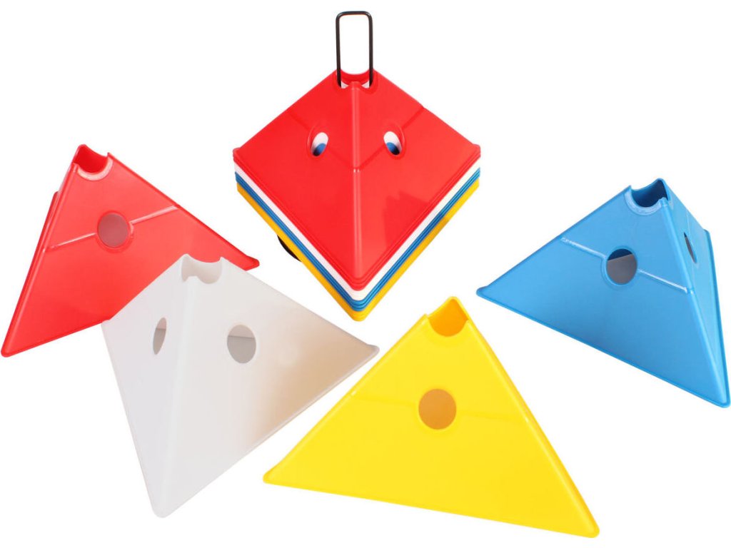 Sada šestnácti vytyčovacích met se stojánkem pro snadné přenášení. Multifunkční vytyčovací mety Merco Tri Corners jsou praktickou pomůckou trenérů různých sportovních odvětví. Mety slouží k vyznačení tréninkové plochy a vytvoření agility překážek ve spojení s plastovými tyčemi s průměrem 25 mm. Plastová meta má výšku 13,5 cm, délku strany 24 cm a hmotnost přibližně 75 g. Úvodní obrázek je pouze ilustrativní a barvy v sadě se mohou lišit. Jednotlivé kombinace nelze vybírat, dodáváme dle aktuálních skladových zásob.Doplňkové parametry