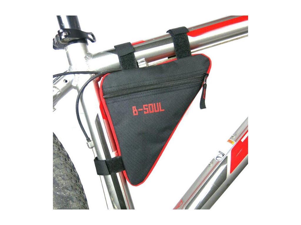 Cyklistická brašna B-SOUL Triangle 1.0 má jednoduchý a osvědčený design. Brašna je dostatečně velká na to, aby pojala osobní věci a zároveň je dostatečně malá na to, aby nijak nepřekážela při jízdě. Triangle 1.0 brašna má jedinou přihrádku na zip nejen pro klíče, peněženku a mobil, ale i pro cyklistické rukavice nebo základní nářadí pro případnou opravu. Štíhlý tvar brašny minimalizuje odpor větru a nepřekáží nohám při šlapání. Triangle 1.0 brašna je zhotovená z pevného polyesterového plátna, které chrání obsah tašky. Rozměry brašny ve tvaru pravoúhlého trojúhelníku jsou 24 x 20 x 18.5 x 4 cm a má tak objem necelého litru. Instalace tašky je prostá. Tři našité pásky na suchý zip jednoduše připnete ke konstrukci bicyklu a je hotovo. Moderní cyklistické vybavení od společnosti B-SOUL vám zpříjemní výlety na kole.Doplňkové parametry