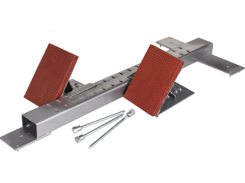 Startovací blok Universal má ocelové tělo s popráškovaným povrchem a polohovatelné pedály z měkké ocele. Startovací blok Universal se kotví třemi hřebíky, je vhodný jak na tartan, tak i na škváru a ideálně se hodí pro školy.