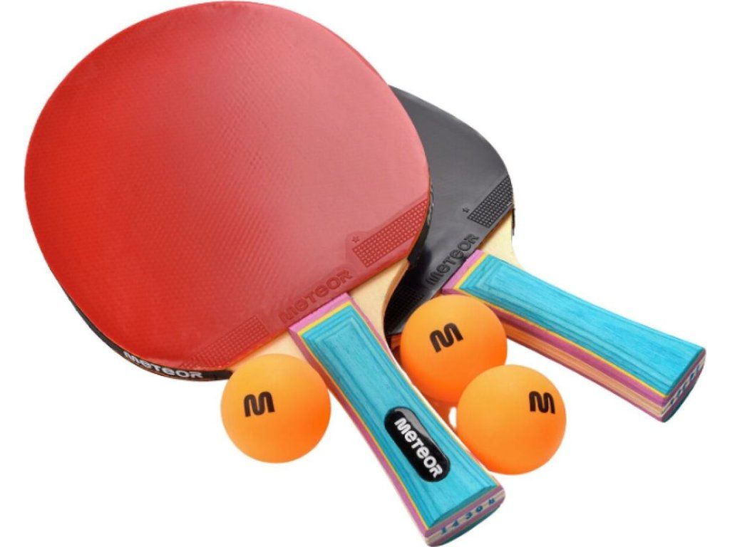 Set na stolní tenis Meteor Zephyr* se skládá ze dvou pálek a tří míčků. Tato sada je určena pro začínající hráče, hobby hráče a obecně všechny lidi, kteří chtějí trávit jejich volný čas aktivně. Ping pongové pálky Zephyr* jsou nástupcem populárního modelu Shang*. Pálky jsou vyrobené z kvalitních materiálů – dřeva, PU pěny a pryže – které zaručují dobrou odolnost a dlouhou životnost. Pálky byly vyrobené pomocí nejmodernějších technologií, díky kterým tak budou splňovat i požadavky náročnějších hráčů. Optimální rychlosti je dosaženo použitím elastické gumy pro vynikající kontrolu a trakci. Dřevěná rukojeť zaručuje velmi dobrý grip, díky čemuž je pálka vhodná pro útočný styl hry. Parametry: Rychlost: 7/10 Rotace: 5/10 Kontrola: 7/10 Délka rukojeti: 100 mm Šířka rukojeti: 33 mm Tloušťka hlavy: 11.5 mm Hmotnost pálky: 156 g Plášť: 2.1 mm Vrstvy: 5 Barva: černo-červená Průměr míčků: 40 mmDoplňkové parametry